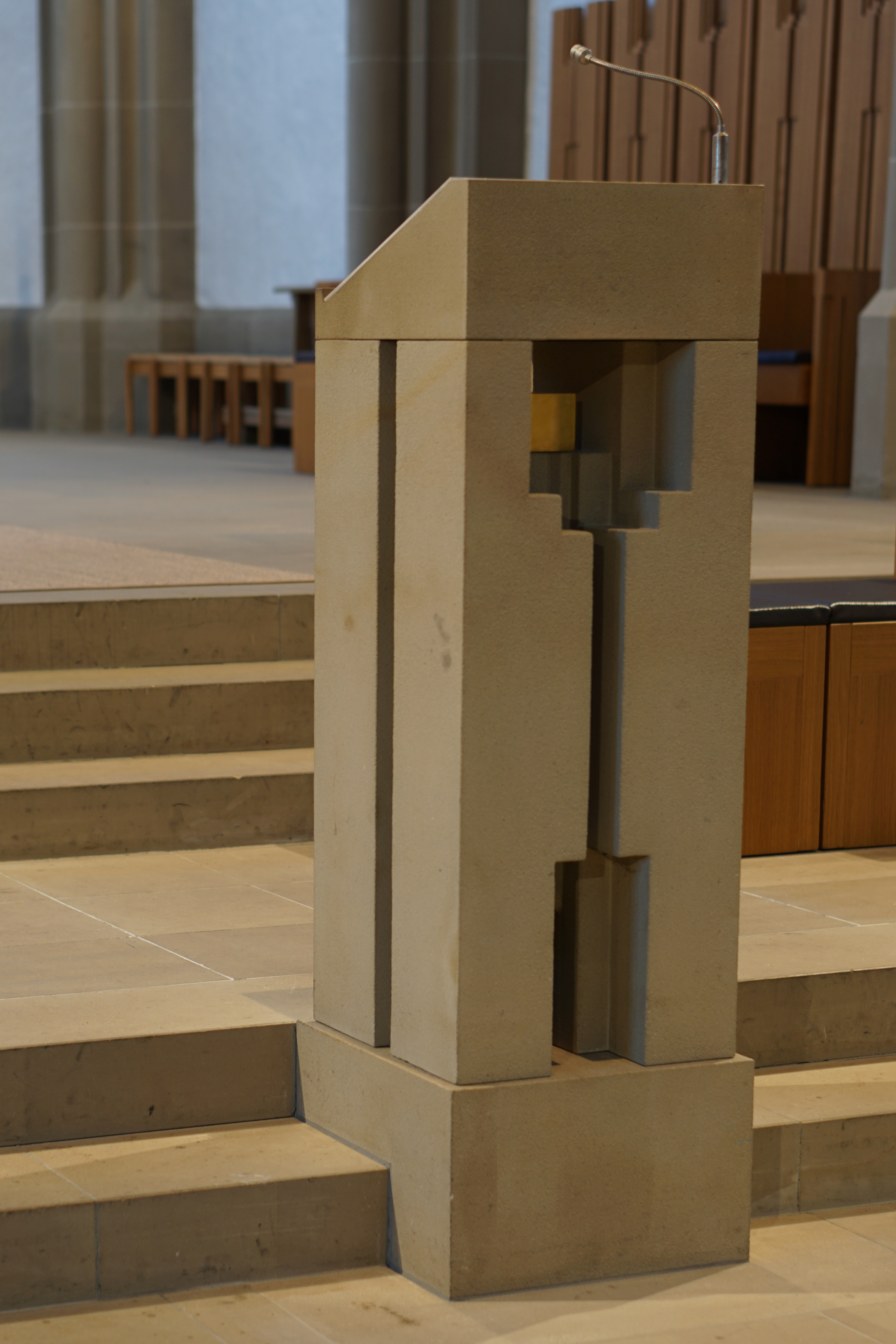 Der Ambo ist oben abgeschrägt, um ein Buch ablegen zu können.