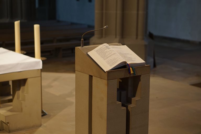 Sie können darüber nachdenken, welche Bibelstelle Sie gerne einmal vom Ambo aus vortragen würden oder was Sie gerne am Ambo predigen würden.