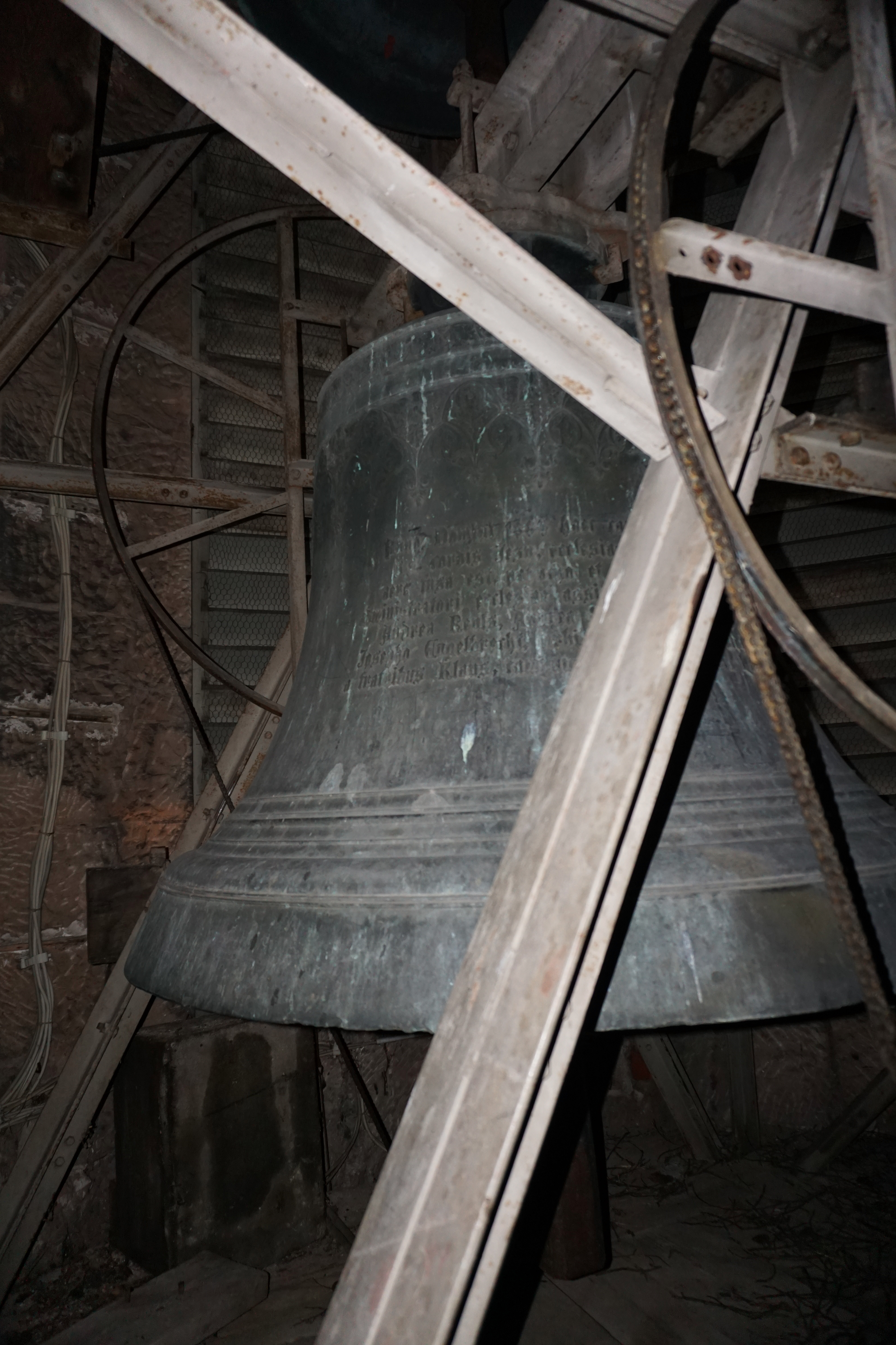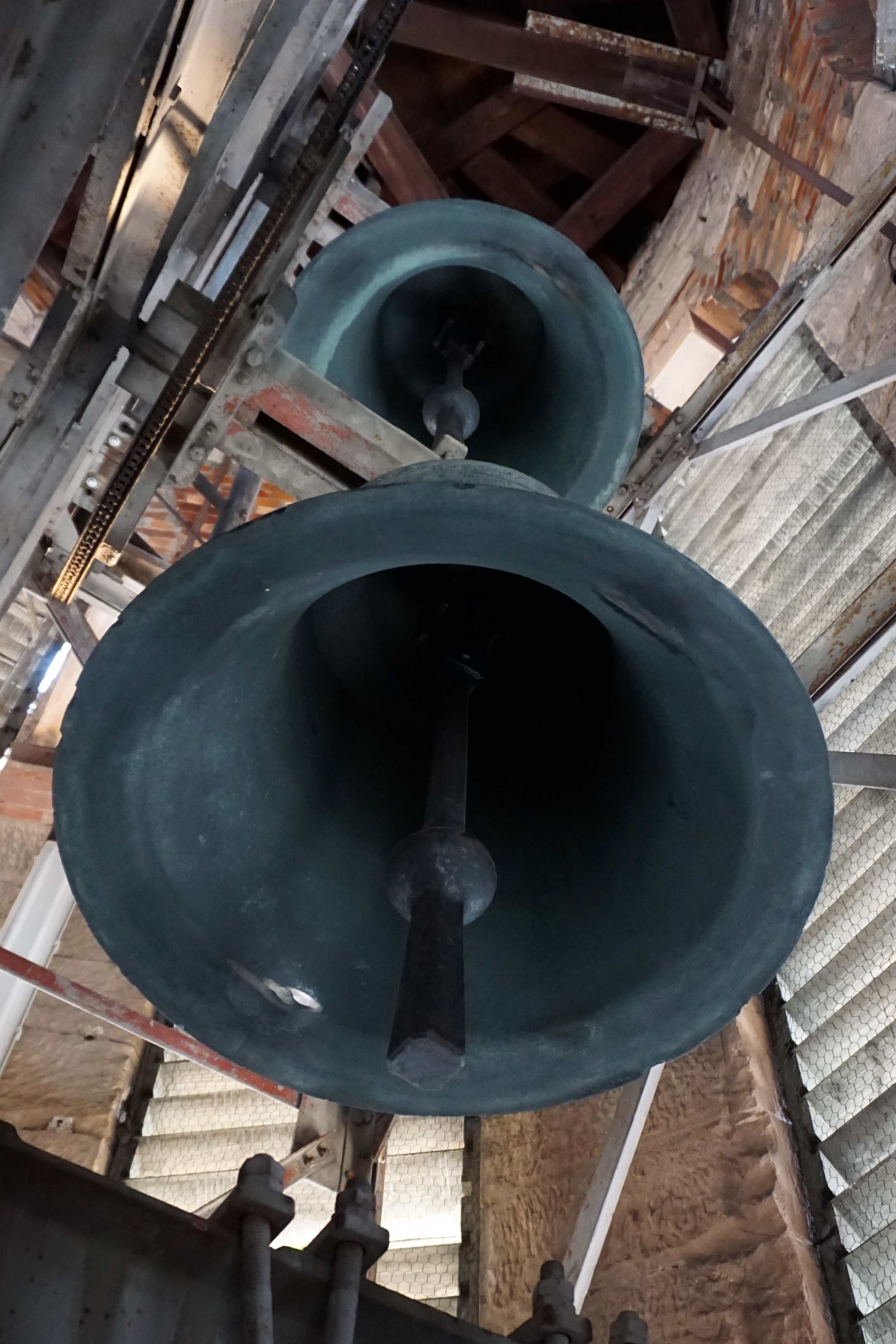 Sie befinden sich im Glockenstuhl (Fachwerkgebilde aus Holz oder Stahl).