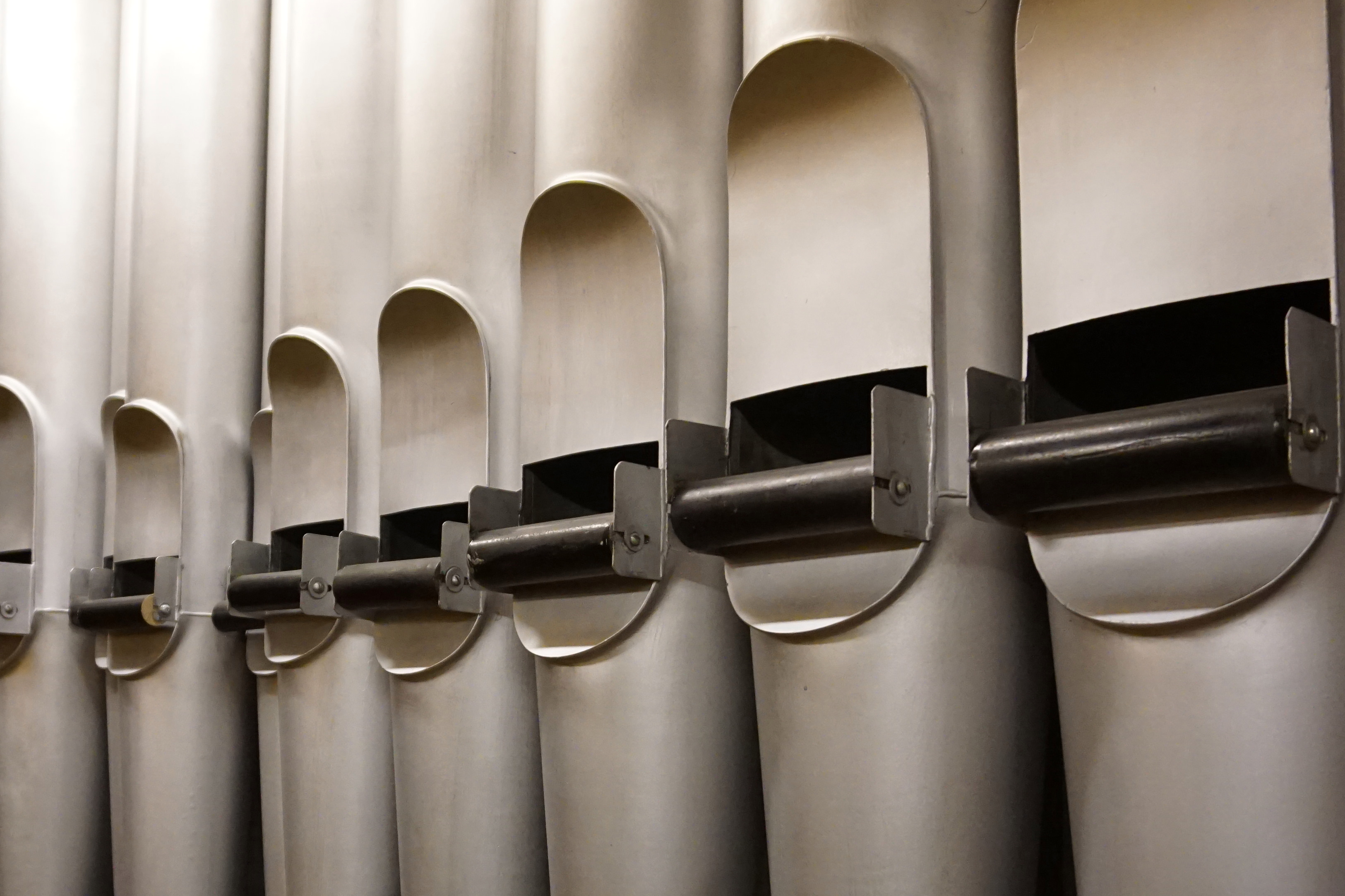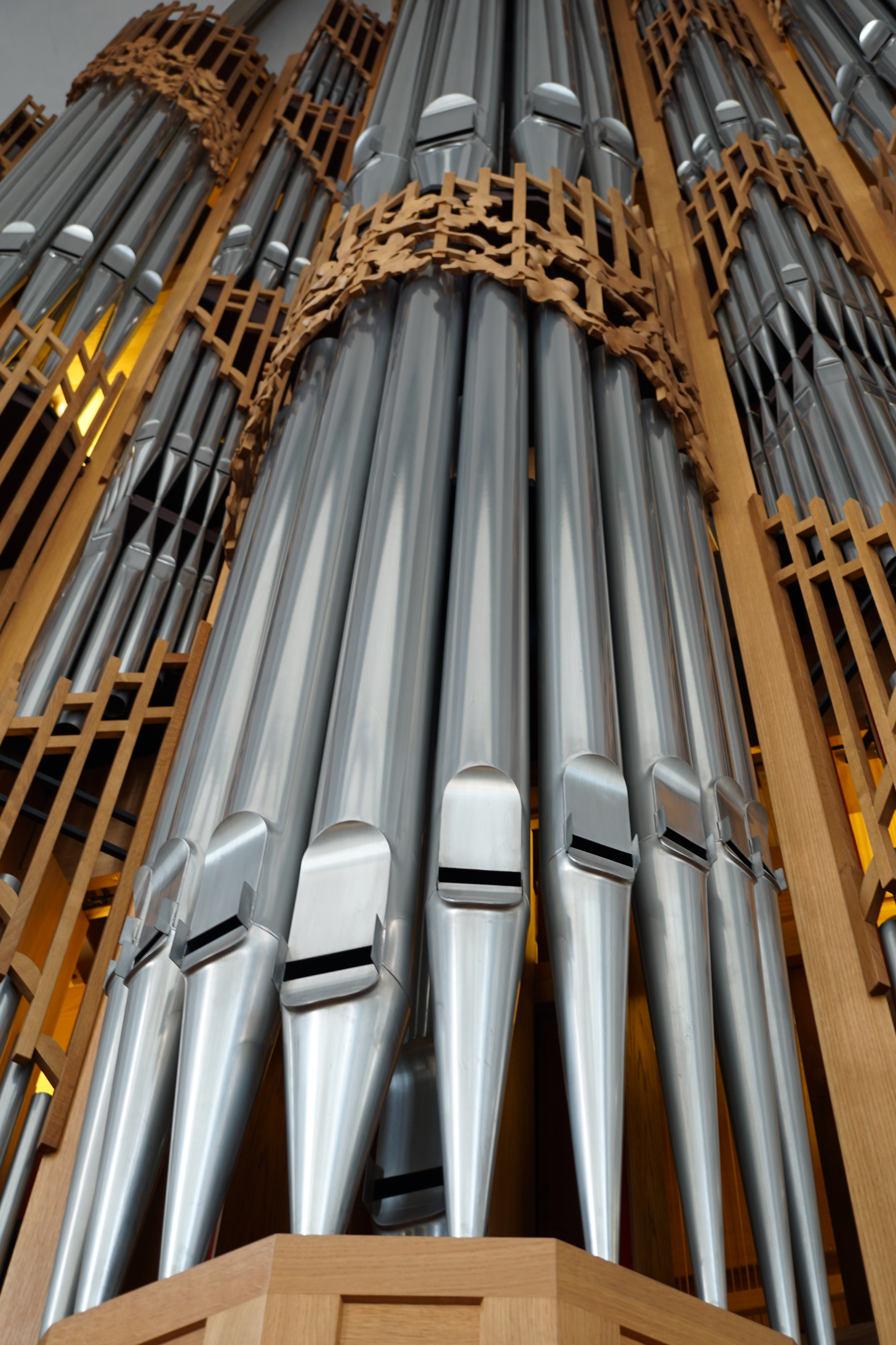 • Die zahlreichen großen und kleinen Orgelpfeifen glänzen silbern.
