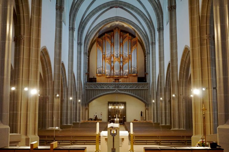 • Die Orgel befindet sich auf der Empore (eine erhöhte Ebene für Orgel und Chor).